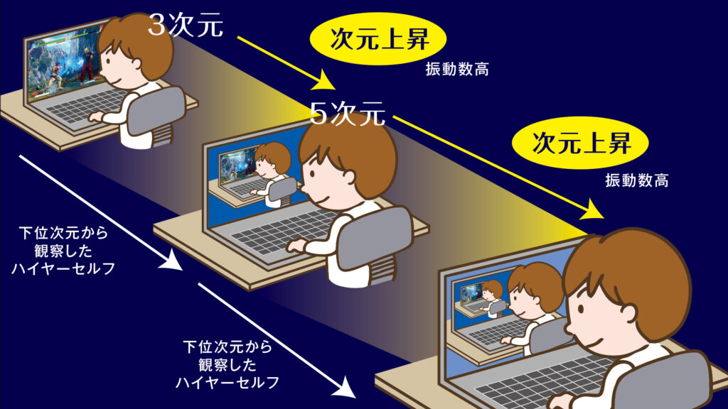 つまり本人は、自分で考え自分で選択していると錯覚していますが、貴方自身をコントロールしているのは上位次元に在る認識者であり、それをスピではハイヤーセルフ(高次の自分)なんて呼んだりします。