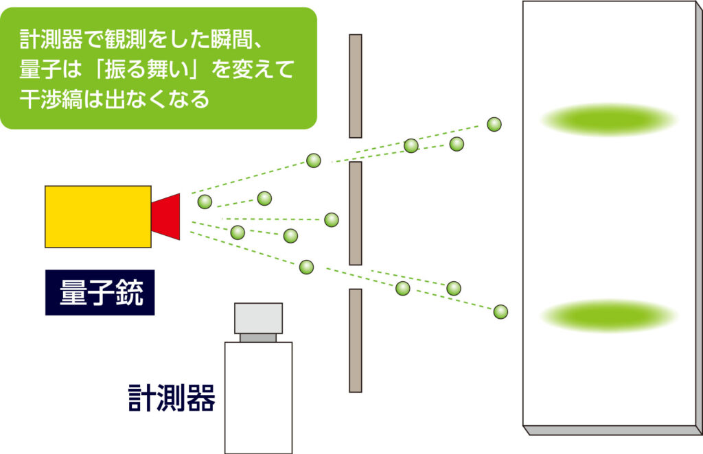 二重スリット実験が示している事実は「観察」が素粒子の振る舞いを変化させるという現象です。
