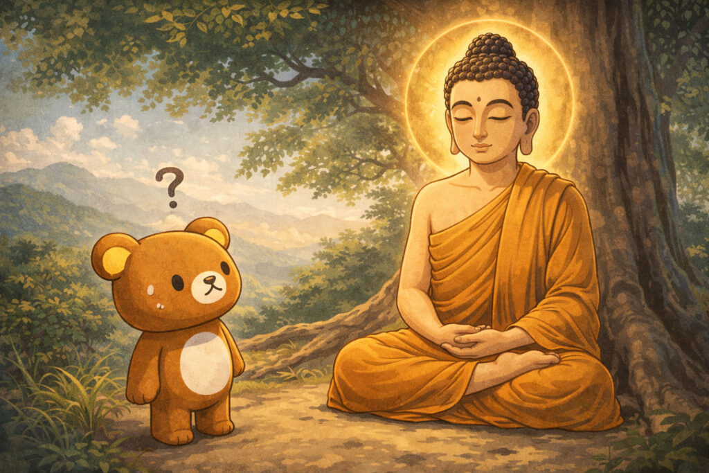 無記とは、釈迦が誰かに説法を行う際、あえて回答を避けて「何も言わない」を決め込んだ態度のことです。
