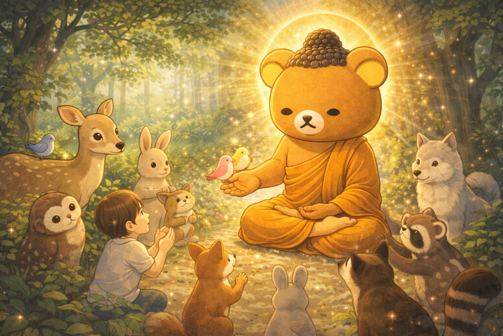 慈悲に満ちた覚者の態度は、一見すると人助けをするために世界を巡礼していた様に映ります。